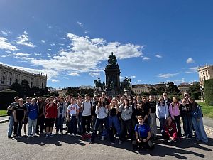 17.září si osmáci a deváťáci zpestřili historickou exkurzí do hlavního města Rakouska, Vídně. Zhlédli jsme Vídeňskou státní operu, obdivovali jsme bronzovou sochu panovnice na Náměstí Marie Terezie, Parlament, vídeňskou Radnici, Hofburg - jeden z největších palácových evropských systémů. Poslední zastávkou byl nejkrásnější rakouský zámek Schönbrunn, letní sídlo Habsburků. Rozlehlý park se slavnou Gloriettou nabizel krásný výhled na zámek a město. Pan učitel Macák doprovázel celou exkurzi poutavým vyprávěním se zajímavými historickými informacemi. Po nákupu suvenýrů a nezbytném občerstvení jsme se už těšili na cestu domů.
