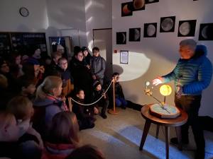 Při příjezdu jsme vyšli schody do místnosti a viděli jsme obří dalekohled, kterým se můžeme koukat na Slunce. Pan průvodce nám vyprávěl o Měsíci a ročním období. Potom jsme se přesunuli do digitálního planetária, kde byl velký sál a promítali nám planety. Zhlédli jsme příběh o planetě a sopce. Autobusem jsme pokračovali do elektrárny "Hučák".