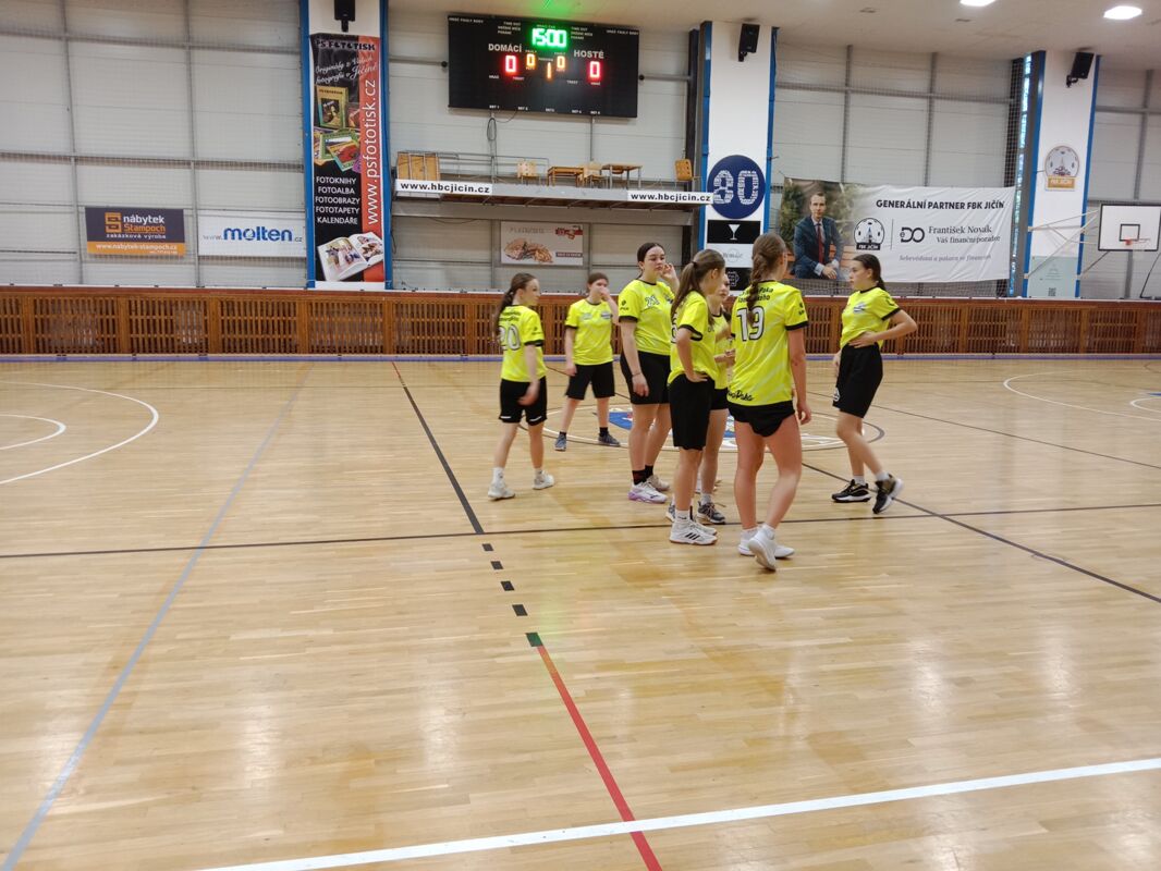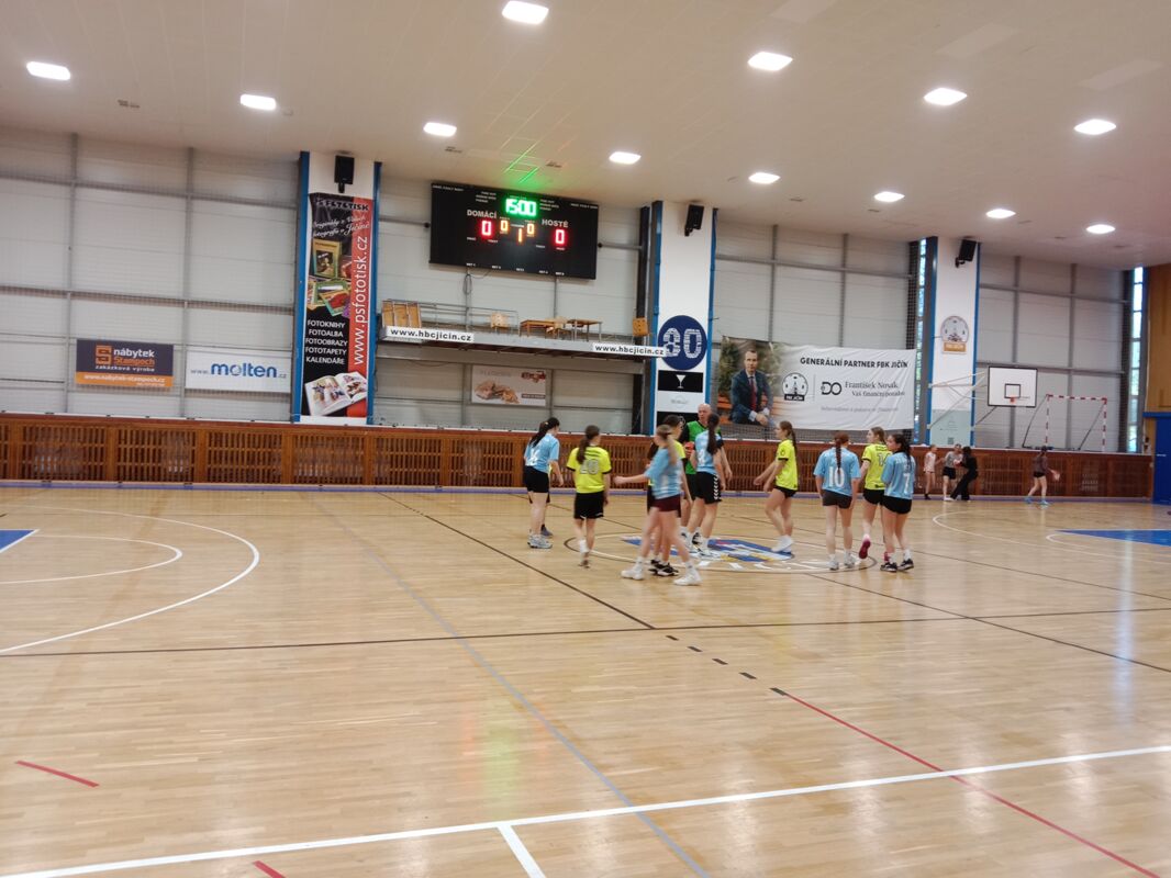Náš tým sehrál skvěle základní skupinu a postupoval z 1.místa.Výbornou hrou,kterou diktovaly především naše nejlepší hráčky-Via Šenkyříková a Íla Kazdová, se nám podařilo postoupit přes “jičínskou čtyřku” (ZŠ Železnická) do finále.V posledním zápase se dívky utkaly o konečné pořadí se ZŠ Husova Jičín. Do poslední chvíle bylo utkání zcela vyrovnané a se závěrečným klaksonem se po několika nezdařených zakončení na světelné tabuli objevil nekompromisní výsledek 16:17 z pohledu naší školy.